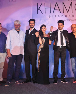 Mahesh Bhatt, Vikram Bhatt, Ali Fazal, Sapna Pabbi, Gurmeet Choudhary At Film Khamoshiyan Music Launch