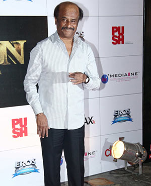 Amitabh, Aishwarya Rai & Rajinikanth attend the curtain raiser event of the Hindi version of his upcoming film "Kochadaiiyaan" at Cinemax, Mumbai, on Sunday, 30 March