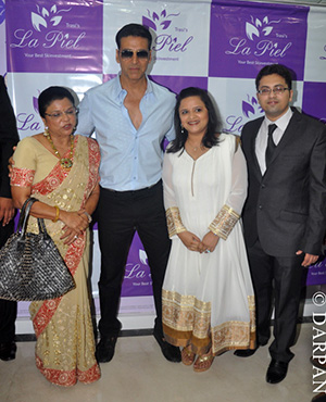 Akshay Kumar and Dr Srilatha Trasi during the unveil of new skin clinic La Piel in Mumbai.