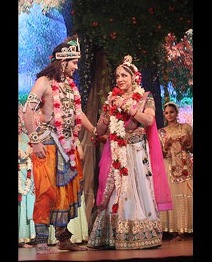 Bollywood actor Hema Malini gestures during the launch of International Society for Krishna Consciousness & 50th Anniversary film Joy of Devotion, in Mumbai