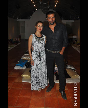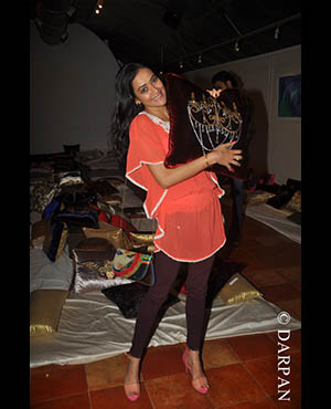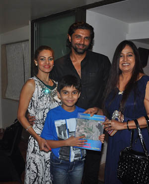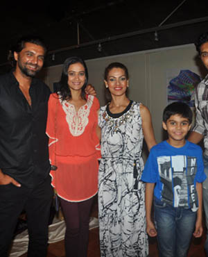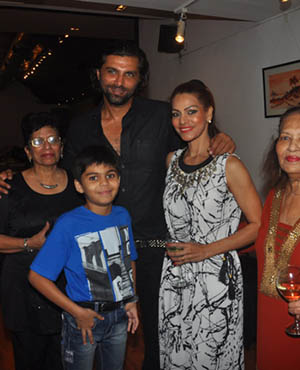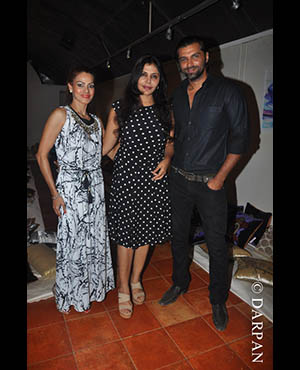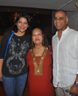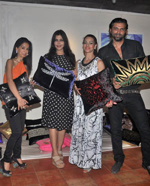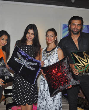 Chetan Hansraj, Viren Shah and Lavinia Hansraj pose with their guests at their Furnishing range Launch