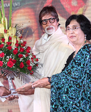 Amitabh Bachchan and Gulshan Grover attend the first look launch of Deepak Sawant's film 'Leader'
