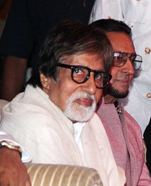 Amitabh Bachchan and Gulshan Grover attend the first look launch of Deepak Sawant's film 'Leader'