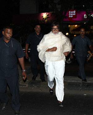Ever a stickler for time Amitabh Bachchan caught in a traffic snarl outside a suburban five star on sunday got out of his car and made a swift trot across the road to arrive in time for the launch of his make-up artist Deepak Sawant's debut Hindi production Leader.