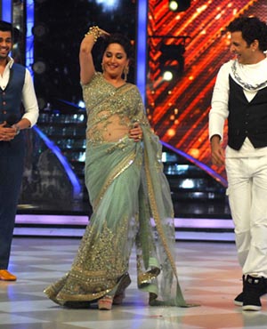 Both the stars were seen dancing with the contestants while shooting for the semi-final episode of the dance reality show. Dancing diva Madhuri Dixit, Karan Johar and choreographer Remo D’Souza also shook their legs with them.