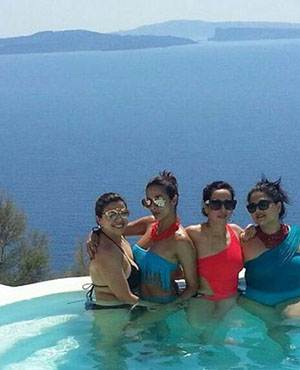 Malaika Arora Khan took a much-needed break and enjoying the sunny beaches of Greece along with her girl gang that includes actress Aditi Govitrikar.