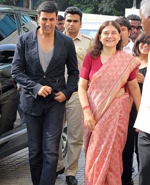 Bharatiya Janata Party leader and animal rights activist Maneka Gandhi Monday unveiled the trailer of Akshay Kumar starrer "It's Entertainment".