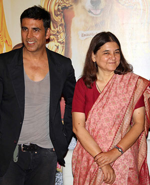Bharatiya Janata Party leader and animal rights activist Maneka Gandhi Monday unveiled the trailer of Akshay Kumar starrer "It's Entertainment".