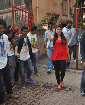 Lead couple Mannara and Karanvir Sharma were spotted at the promotional event for their upcoming film Zid at Andheri