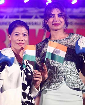 Priyanka Chopra launched the music of her upcoming film 'Mary Kom' with the legendary Indian boxer herself.