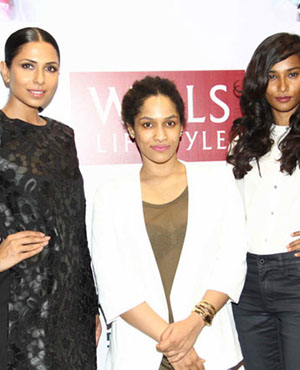 Candice Pinto, Fashion designer Masaba Gupta and model Nidhi Sunil spotted during the launch of fiama DI wills shower jewels in Mumbai