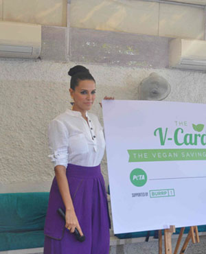 Neha Dhupia recently unveiled PETA's V-Card in Mumbai which is said to be India's first vegan discount card.