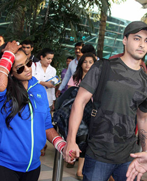 Arpita Khan and Aayush Sharma arrive in Mumbai after their wedding ceremony