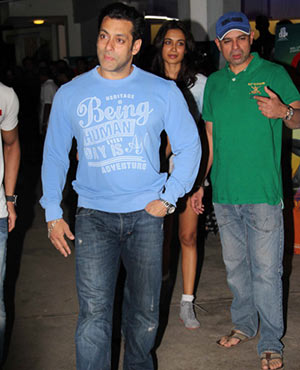 Salman Khan, Atul Agnihotri, Alvira Agnihotri along with the star cast of the movie Pulkit Samrat, Bilal Amrohi And Serah Jane Dias attend the screening of the film 'O Teri'.
