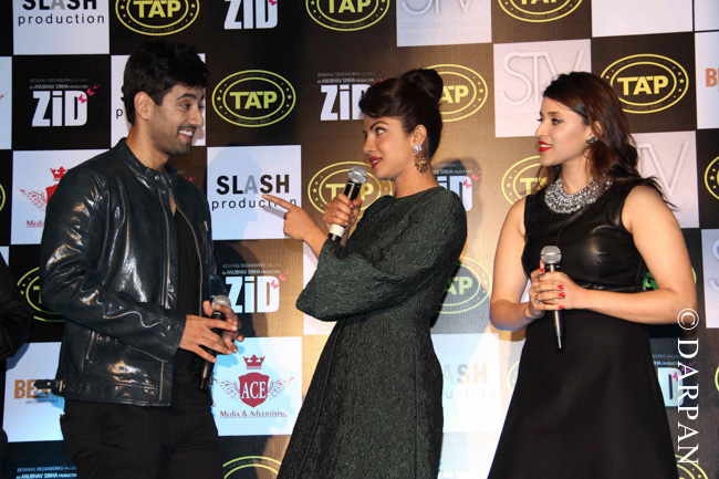 Priyanka Chopra was spotted ath the Music Success Party of her cousin's film Mannara's 'Zid'. Also present were Anubhav Sinha, Karanvir Sharma, Mushtaq Sheikh and rest of the crew from the film
