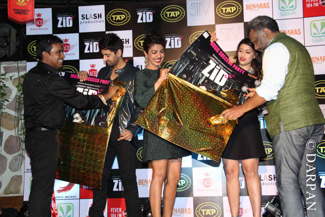Priyanka Chopra was spotted ath the Music Success Party of her cousin's film Mannara's 'Zid'. Also present were Anubhav Sinha, Karanvir Sharma, Mushtaq Sheikh and rest of the crew from the film
