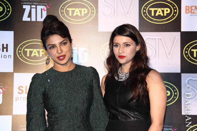 Priyanka Chopra was spotted ath the Music Success Party of her cousin's film Mannara's 'Zid'. Also present were Anubhav Sinha, Karanvir Sharma, Mushtaq Sheikh and rest of the crew from the film