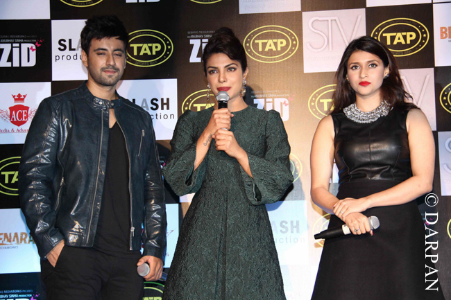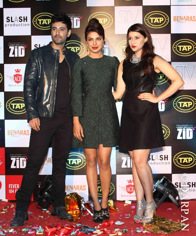 Priyanka Chopra was spotted ath the Music Success Party of her cousin's film Mannara's 'Zid'. Also present were Anubhav Sinha, Karanvir Sharma, Mushtaq Sheikh and rest of the crew from the film