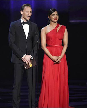 Priyanka, 34, and Tom, 35, gave away the Outstanding Directing for a Limited Series, Movie, or Dramatic Special award to Tom's The Night Manager director Susanne Bier. Priyanka was at the Emmys courtesy her headlining role on network show Quantico.