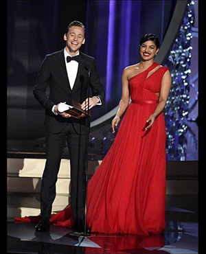 Priyanka, 34, and Tom, 35, gave away the Outstanding Directing for a Limited Series, Movie, or Dramatic Special award to Tom's The Night Manager director Susanne Bier. Priyanka was at the Emmys courtesy her headlining role on network show Quantico.