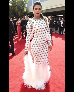 Detailed with finesse, her white goddess avatar won hearts everywhere, be it at the red carpet or on the stage. While at the last Emmys, Priyanka made news with her Jason Wu one-shouldered all-red chiffon gown, her head-turning appearance this time too, left a similar mark.