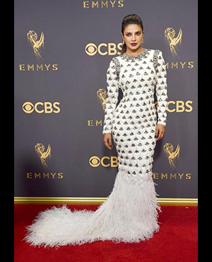 'Quantico' actor Priyanka Chopra looked like a dream in white donning her beautiful Balmain gown at the 69th Primetime Emmys 2017.