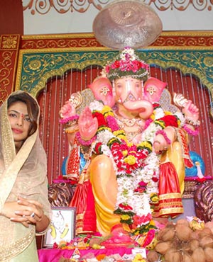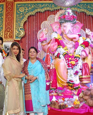 Bollywood actress Priyanka Chopra visited Andheri Cha Raja in Mumbai to offer her prayers to Lord Ganesh.