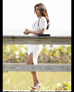 The actress, who will be playing the character named Victoria Leeds in her Hollywood debut film, has started shooting for the film. Here's a look at the pictures from the sets of 'Baywatch'.