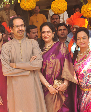 Rashmi Uddhav Thackeray and Sharmila Raj Thackeray along with Raj Thackeray’s mother Madhuwanti Shrikant Thackeray came early and lent a helping hand to Smita Thackeray.  Uddhav Thackeray accompanied by son Aaditya Thackeray arrived soon after to bless the couple. Manohar Joshi, Jackie Shroff and Sonu Nigam accompanied by wife Madhurima and son Nevaan arrived soon after.
