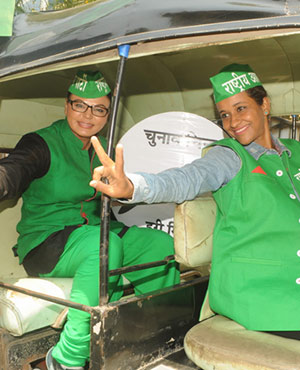 Rakhi sawant follows her manifesto and drives around town with women autorickshaw driver