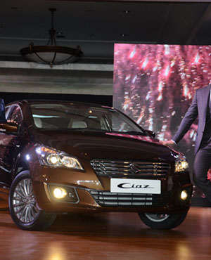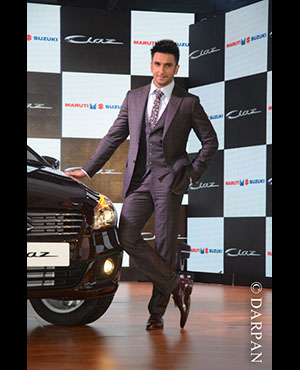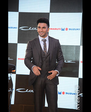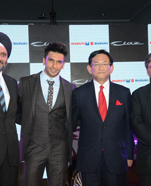 Kenichi Ayukawa, MD and CEO, Maruti Suzuki India Limited and actor Ranveer Singh during the launch of Maruti Suzuki Ciaz in Mumbai.