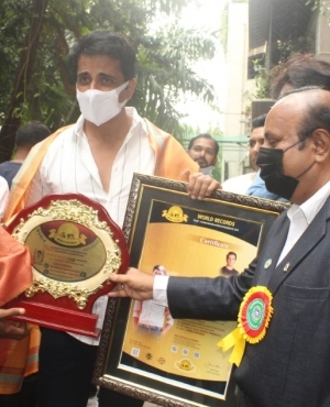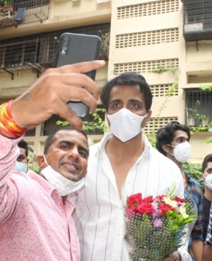 Fans mobbed his residence to catch a glimpse of Sood and present him with cakes, flowers and fan-art.