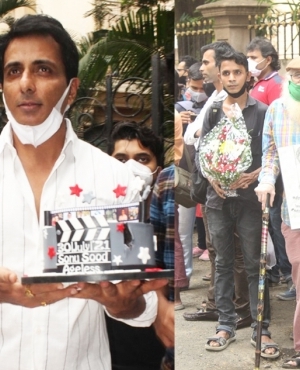 Fans mobbed his residence to catch a glimpse of Sood and present him with cakes, flowers and fan-art.