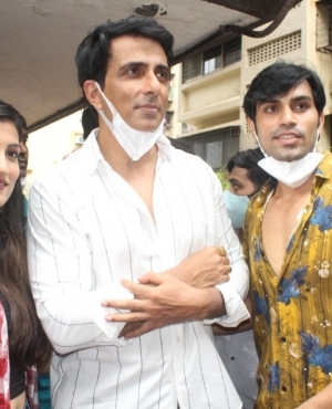 Fans mobbed his residence to catch a glimpse of Sood and present him with cakes, flowers and fan-art.