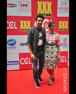 The event was the launch of Celebrity Cricket League 2015. At the red carpet were present many Bollywood celebs such as Genelia D'souza, Riteish Deshmukh, Sonu Sood, Suniel Shetty, Lisa Haydon and Sophie Choudry.