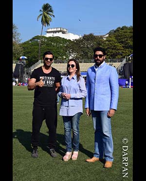 Nita Ambani, Sachin Tendulkar, Abhishek Bachchan and John Abraham during RFYS National Football Championships at Cooperage ground in Mumbai