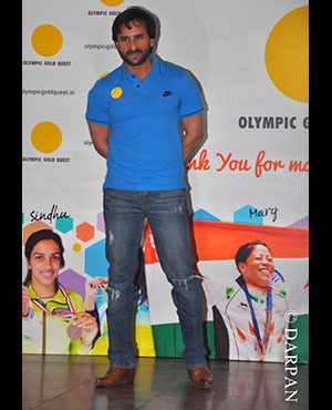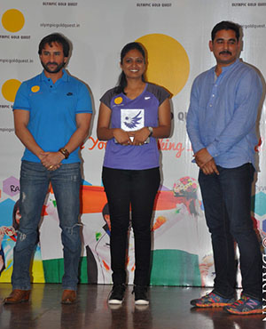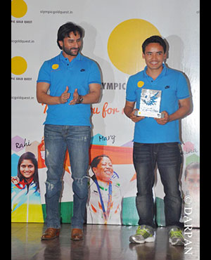Saif Ali Khan felicitated Asian Games medalist Rahi Sarnobat,Heena Sidhu, Jitu Rai at a function in Cricket Club of India (CCI) in Mumbai
