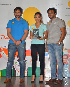 Saif Ali Khan felicitated Asian Games medalist Rahi Sarnobat,Heena Sidhu, Jitu Rai at a function in Cricket Club of India (CCI) in Mumbai