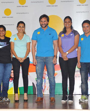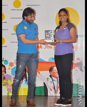 Saif Ali Khan felicitated Asian Games medalist Rahi Sarnobat,Heena Sidhu, Jitu Rai at a function in Cricket Club of India (CCI) in Mumbai