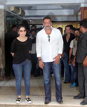 Hundreds of fans gathered outside his Bandra residence, celebrating with song and dance the return to Bollywood of their favourite hero who has been regaling cinegoers for over 30 years. Manyata, his third wife, their twin kids and sister Priya hugged and kissed him.