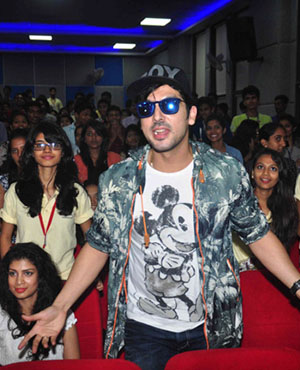 Zayed, Tena Desae promote film Sharafat Gayi Tel Lene Autocar Performance Show and Sydenham College