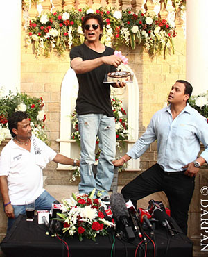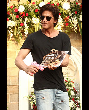 On his 49th birthday, Bollywood actor Shah Rukh Khan, who is riding high on the success of his film Happy New Year, interacted with his fans outside his home in Mumbai. King Khan also cut a cake with the media.