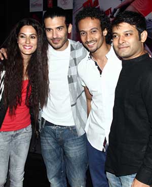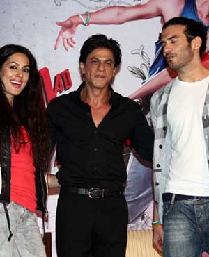 Amrit Maghera, Shahrukh Khan and Saahil Prem during the unveiling of the application the Mad Wall of Dreams created for the upcoming film 'Mad About Dance' in Mumbai
