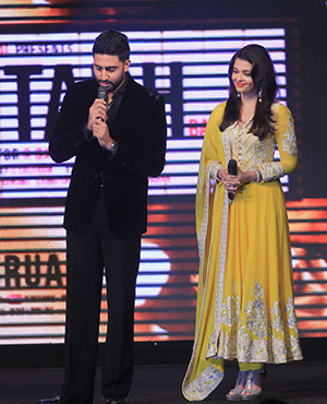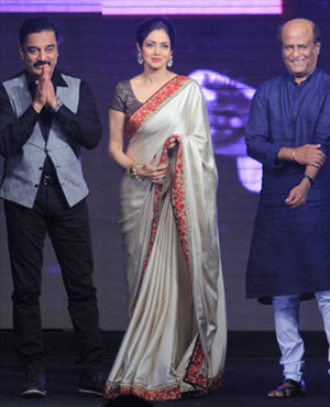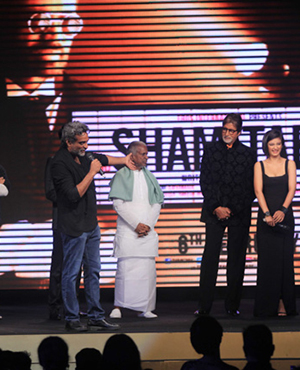 Amitabh Bachchan, Kamal Haasan, Sarika, Gulzar, Aishwarya Rai, Abhishek Bachchan, Sridevi, Dhanush, Akshara at “Shamitabh” music launch
