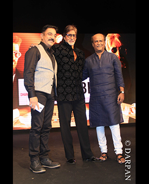 Amitabh Bachchan, Kamal Haasan, Sarika, Gulzar, Aishwarya Rai, Abhishek Bachchan, Sridevi, Dhanush, Akshara at “Shamitabh” music launch