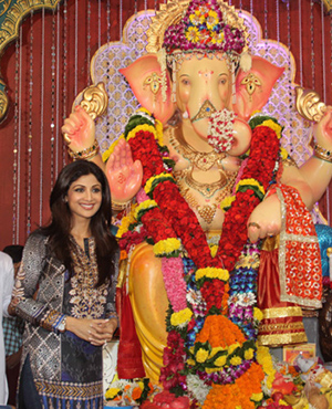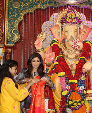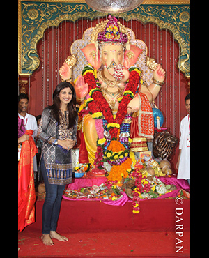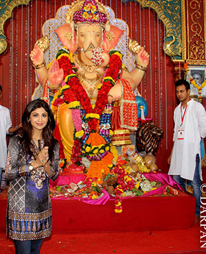 Shilpa Shetty offered prayers at the famous Ganapti pandal Andhericha Raja pandal in Mumbai with her parents
