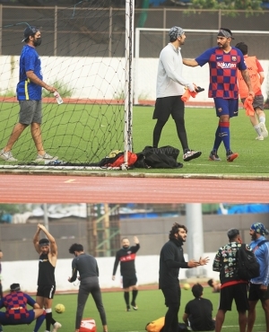 Celebs are seen playing soccer as covid restrictions are being slowly lifted in India and soccer fields started opening again.