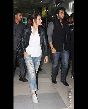 Arjun Kapoor and Sonakshi Sinha snapped at Mumbai Airport
