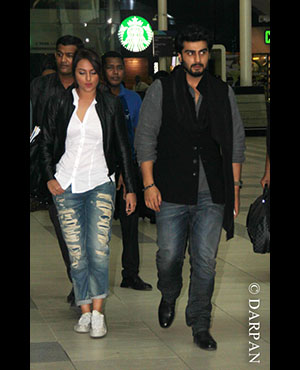 Arjun Kapoor and Sonakshi Sinha snapped at Mumbai Airport