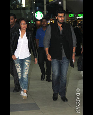 Arjun Kapoor and Sonakshi Sinha snapped at Mumbai Airport